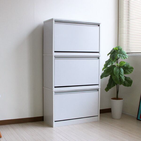 ■省スペースに最大27足を収納できる薄型シューズボックス。