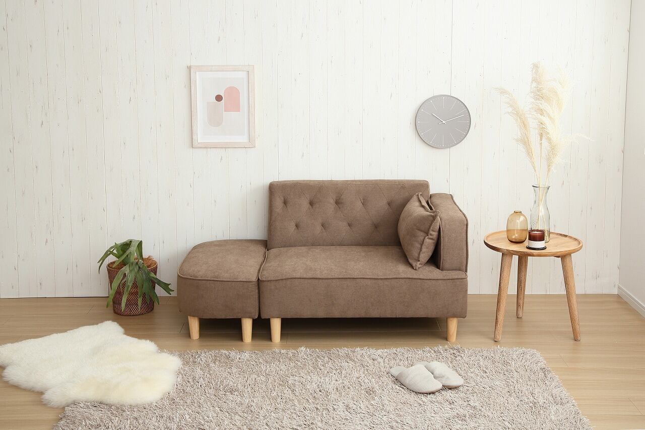 ⭐️SHOPカードと併せて更にお得‼️空間に馴染むオットマン付き2人掛けソファ!!