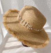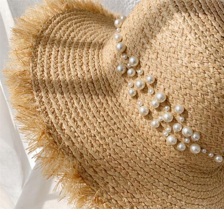 お散歩 キャンプ レジャー 通勤 麦わら帽子 海辺 ビーチ 休暇 パール 装飾 日を遮る 日焼け止め 日よけ帽 折りたたみ式 sweet系 op