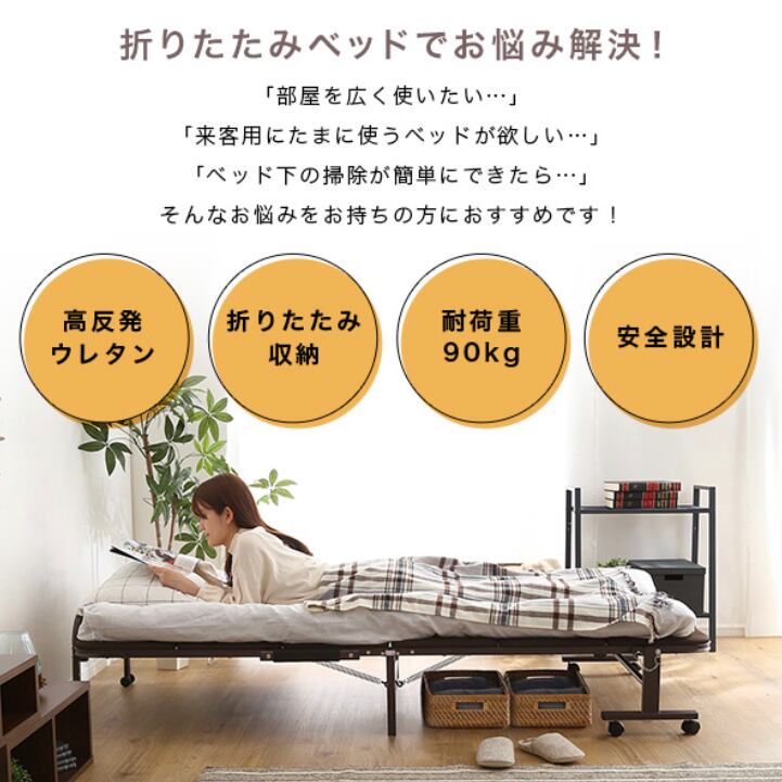 高反発ウレタンでしっかりと身体を支えてくれる寝心地の良い折りたたみベッドシングルサイズ!