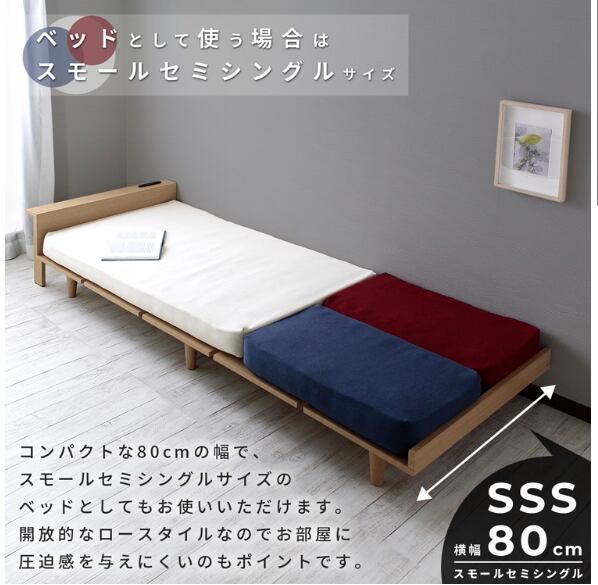 一人暮らしにオススメな横幅80cmのスモールセミシングルベッドとしてもお使いいただけます。